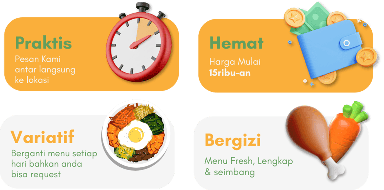 Variasi menu setiap hari, harga ramah kantong, delivery langsung ke meja anda.